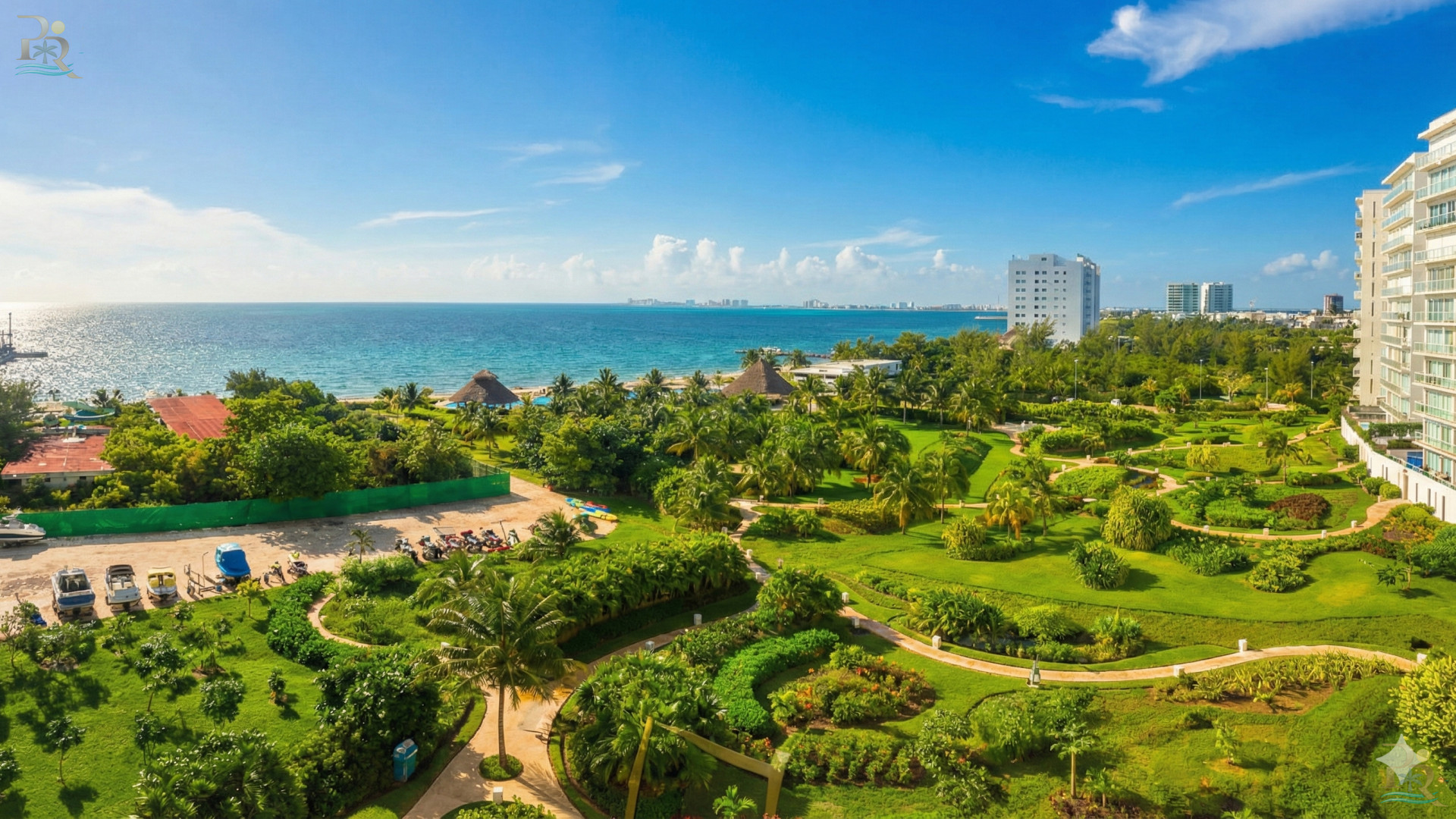 The Crown Jewel: A massive 6th-floor lounge terrace. Ready for a circular daybed and outdoor dining, it offers panoramic views stretching from the Isla Mujeres horizon to the Cancun Hotel Zone.